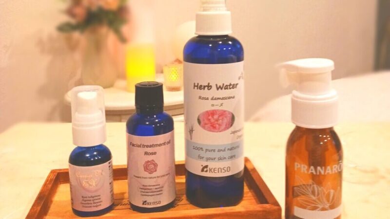 ローズ精油を使ったアロマフェイシャルとハンド&デコルテケア、さらにローズ美容クリーム作成がセットになった12月限定メニュー。乾燥・くすみ・ハリ不足にやさしく届く特別なローズ美容です。